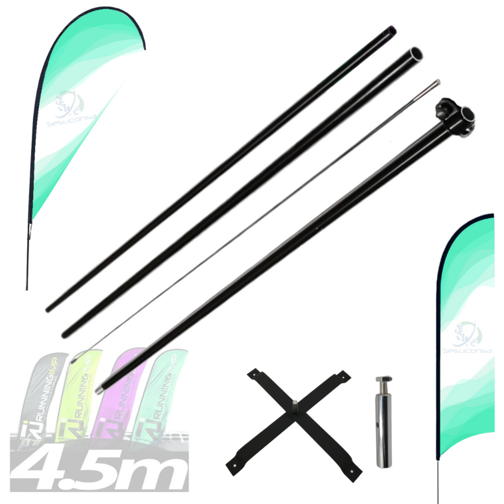 Asta de aluminio para bandera publicitaria forma de PLUMA y GOTA de 2.8m, 3.5m, 4.5my 5.5my accesorios de montaje; estacas, donas, crucetas, pivotes, etc.