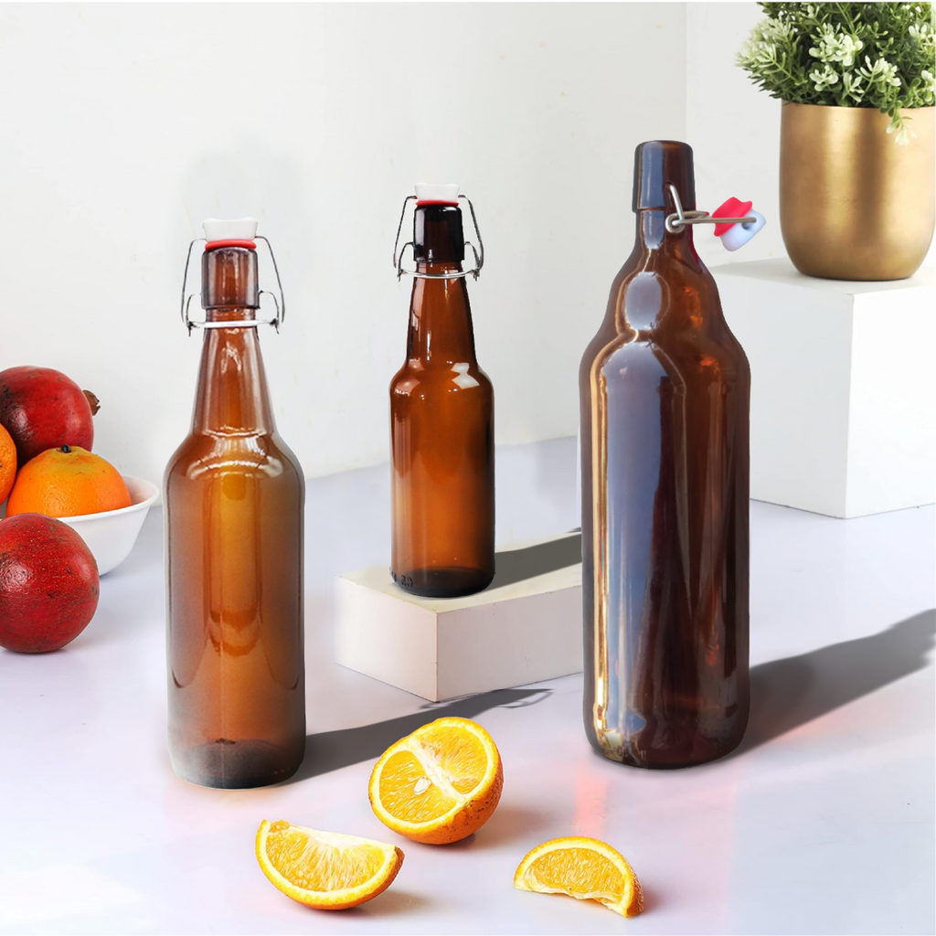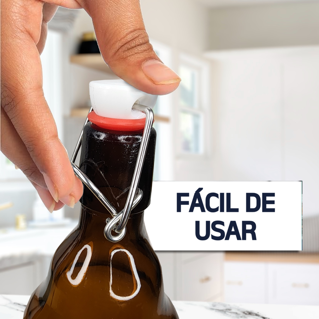 6 Botellas De Vidrio ambar + Tapones Mecánicos 500ml: