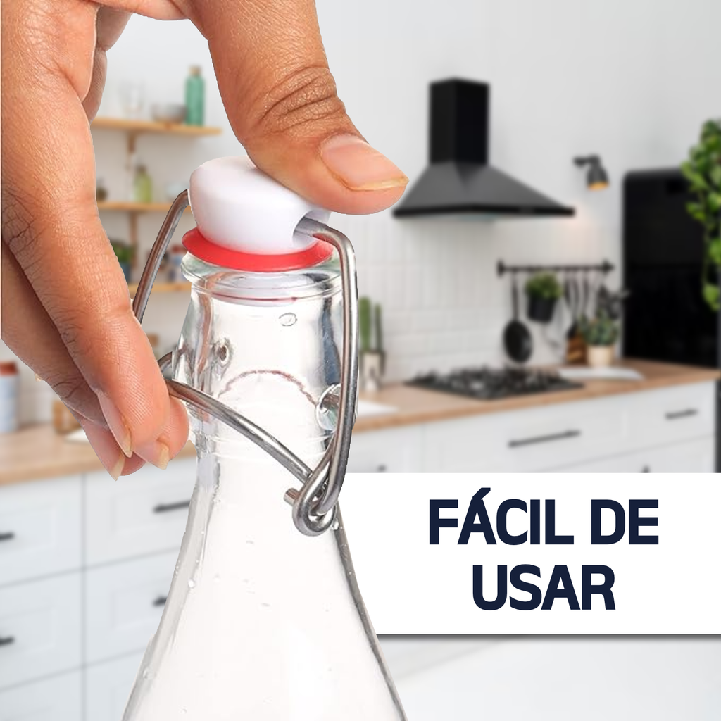 6 Botellas De Vidrio + Tapones Mecánicos 1000ml:
