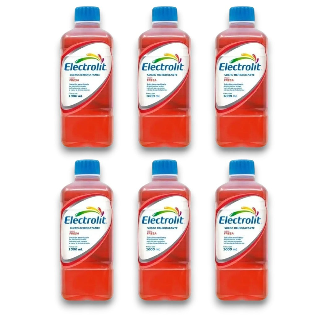 Bebida deportiva Electrolito sabor Fresa para tomar durante el ejercicio y actividades al aire libre; pack con 6 botellas de 1000 ml; ideal para gym, correr o días calurosos; tómala bien fría.