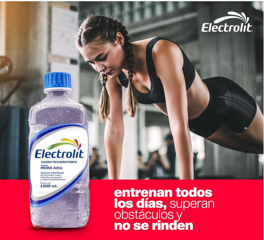 Bebida deportiva Electrolito sabor mora azul para tomar durante el ejercicio y actividades al aire libre; pack con 6 botellas de 1000 ml; ideal para gym, correr o días calurosos; tómala bien fría.