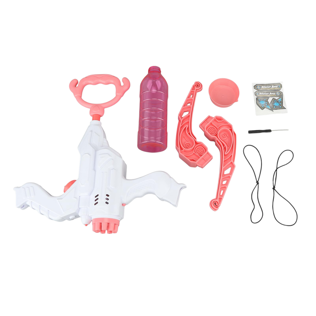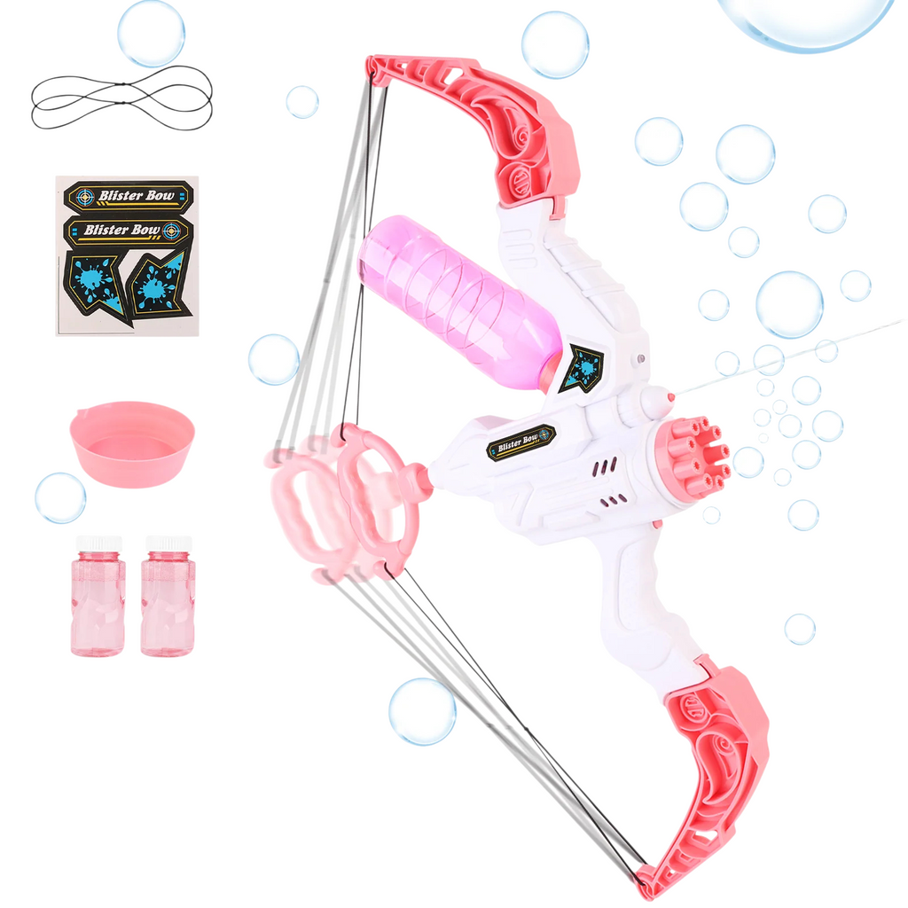 Esta innovadora pistola de burbujas 3 en 1 con arco y flecha combina la emoción de una máquina de burbujas, un lanzador de agua y un juguete de tiro con arco. Diseñada para cautivar la atención de los niños, podrán experimentar la emoción del tiro con arco mientras disfrutan de una diversión burbujeante.