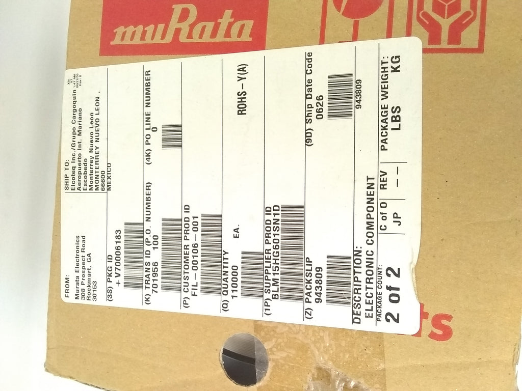 Rollo de Chip 600 OHMS Murata BLM15HG601SN1D 10000 PZA