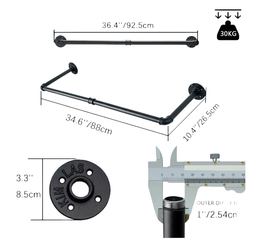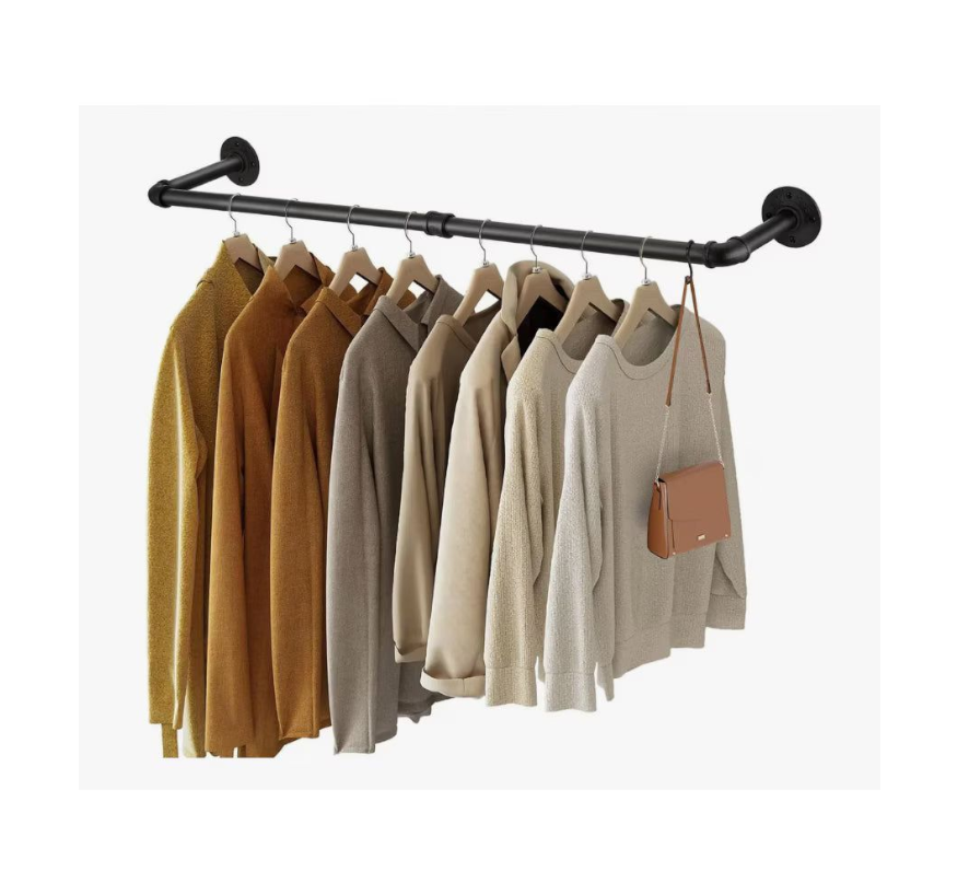 DISEÑO DE TUBO INDUSTRIAL: la percha tiene un diseño atractivo y está hecha de tubería de metal, lo que agrega un estilo vintage industrial a su hogar o tienda minorista. Hemos diseñado este colgador de pared para que sea genial y llamativo.