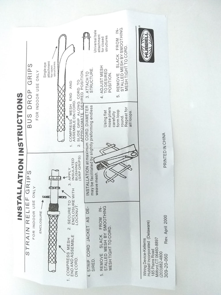 HUBBELL KELLEMS STRAIN RELIEF CORD GRIP