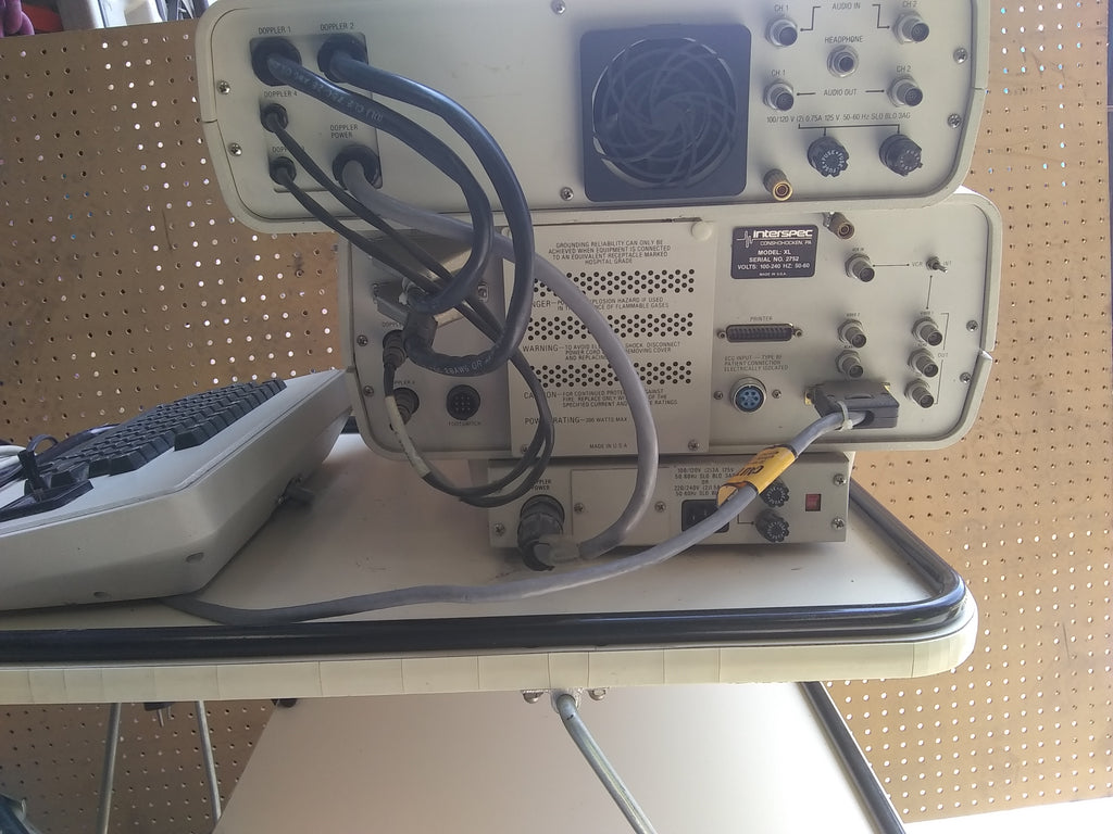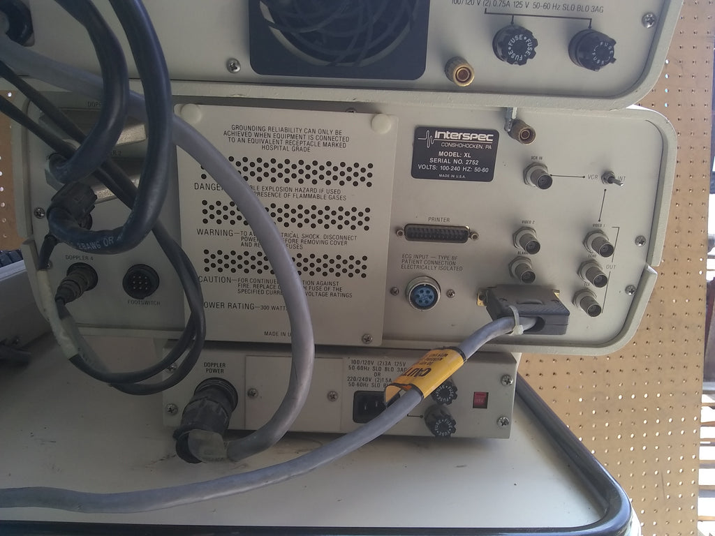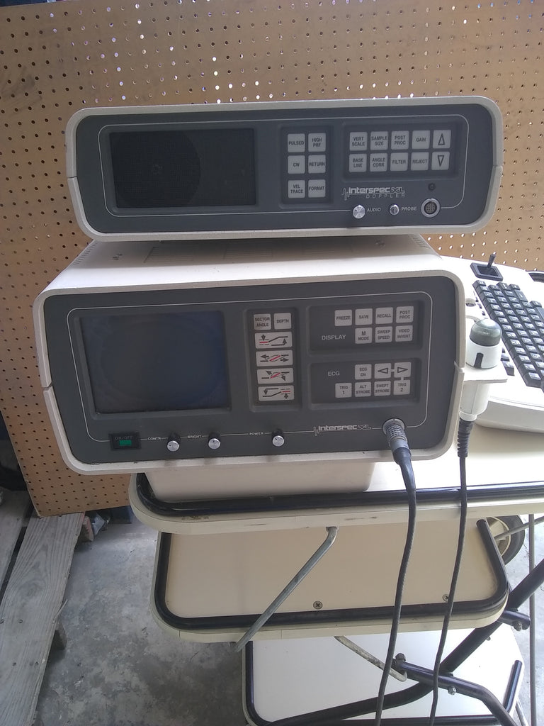 El sistema de ultrasonido de diagnóstico Interspec XL Serie 3 incluye Interspec XL, Doppler, carro, cables y cables conductores. Viene con todo lo visto en fotos.