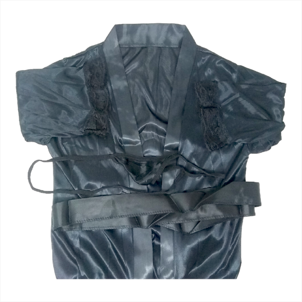 Es corta, con mangas anchas e ideal para salir de la ducha, entrar en la cama o levantarte a la mañana pura elegancia y sensualidad.