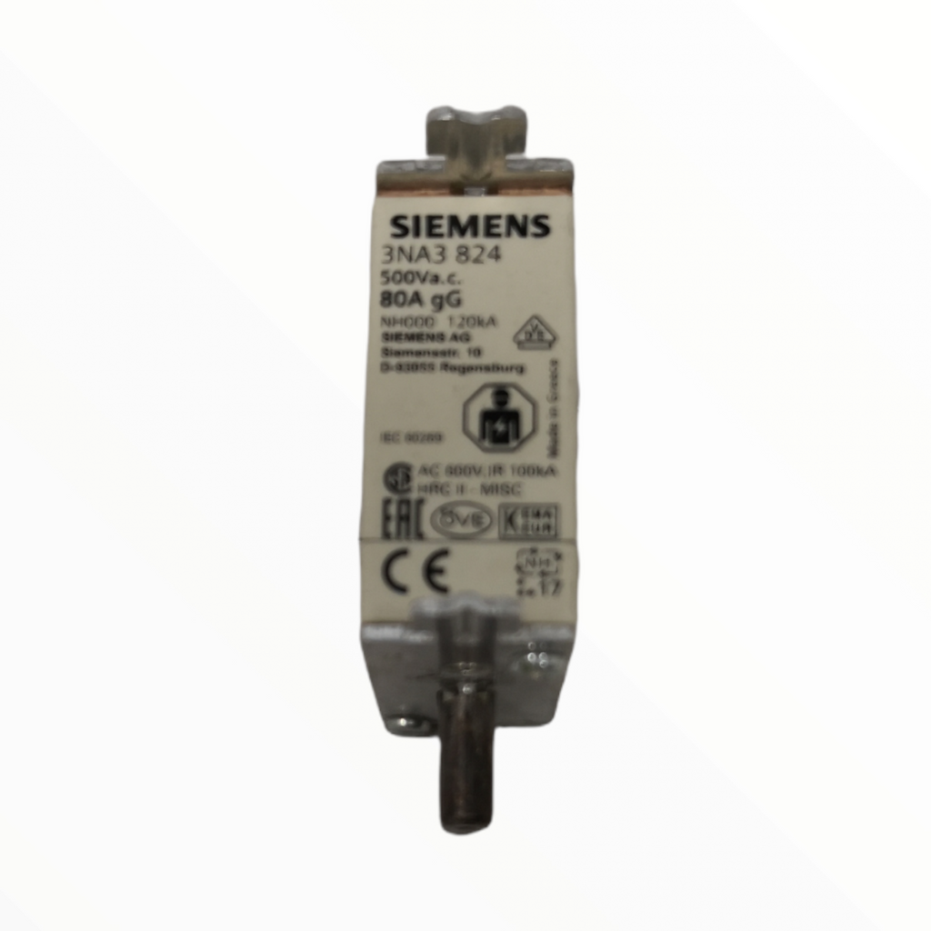 El sistema de fusibles NH de Siemens, como parte importante de los componentes de protección SENTRON para la instalación eléctrica, brinda protección efectiva a las personas, los dispositivos y la inversión mediante un apagado seguro en caso de sobrecarga y cortocircuito. En comparación con los interruptores automáticos, se pueden obtener mayores corrientes de cortocircuito al mismo tiempo, mejor limitación de corriente. El sistema de fusibles NH se caracteriza principalmente por: 1. Desconexión combinada de la señal del detector del fusible con un claro cambio de color de rojo a blanco. 2. Más seguridad al cambiar por agarraderas aisladas. 3. Alta selectividad a bajo costo. 4. Operación confiable a largo plazo debido a las cuchillas de contacto plateadas. 5. Fusibles de 2 A a 1250 A y en los tamaños 000, 00, 0, 1, 2, 3, 4 y 4ª.