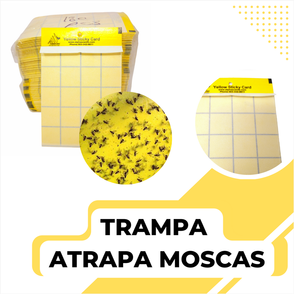 Trampa pegajosa de color amarilla, a doble cara, ideal para la captura de insectos tales como moscas, mosquitos, palomillas entre otros.