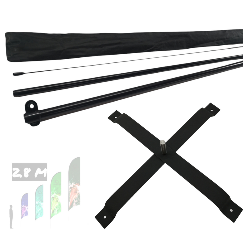 Asta de bandera 2.8m + Base cruceta + pivote giratorio premium