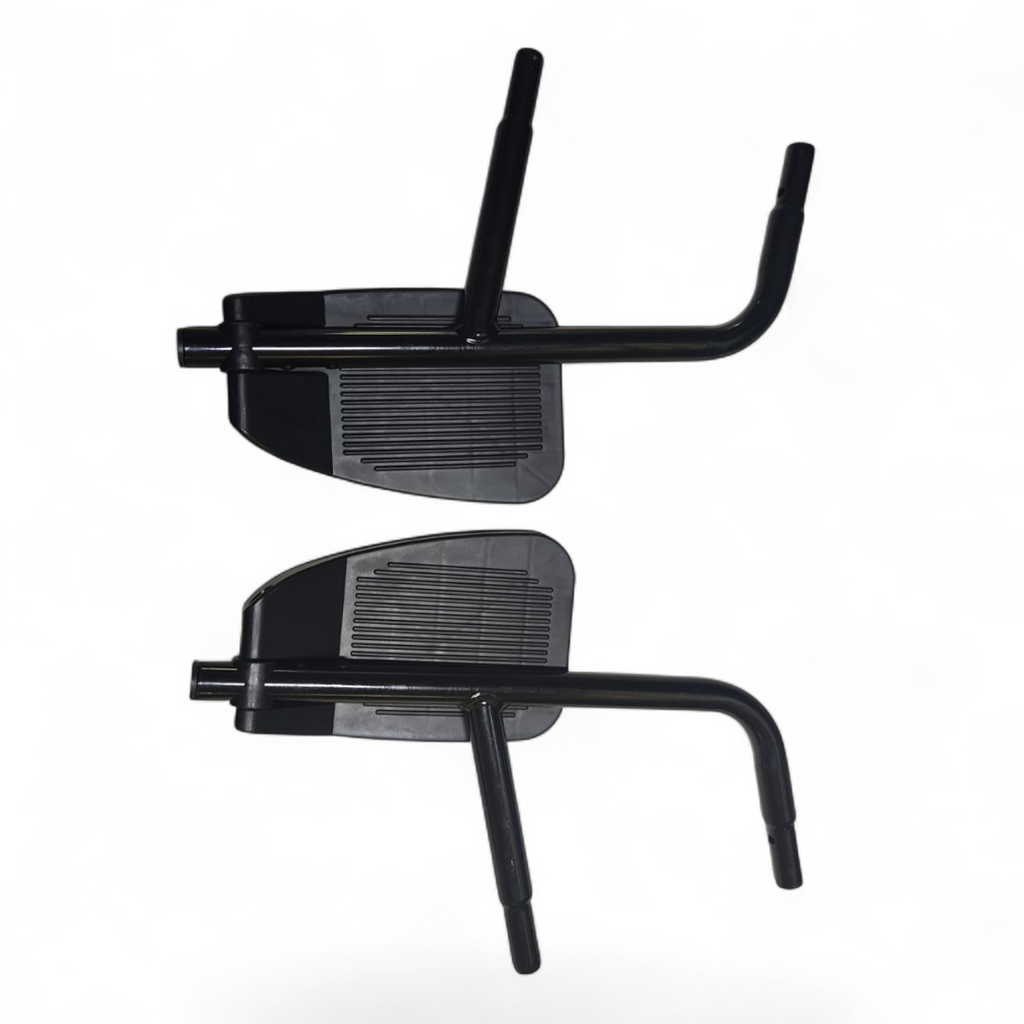 -Descansapiés: Abatibles y desmontables, con plataforma de soporte en material metálico y plástico reforzado.