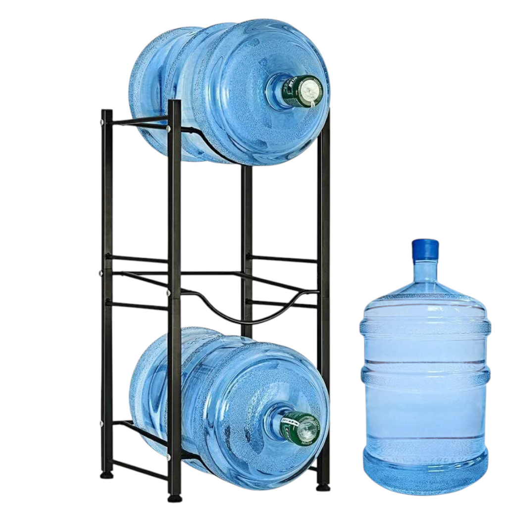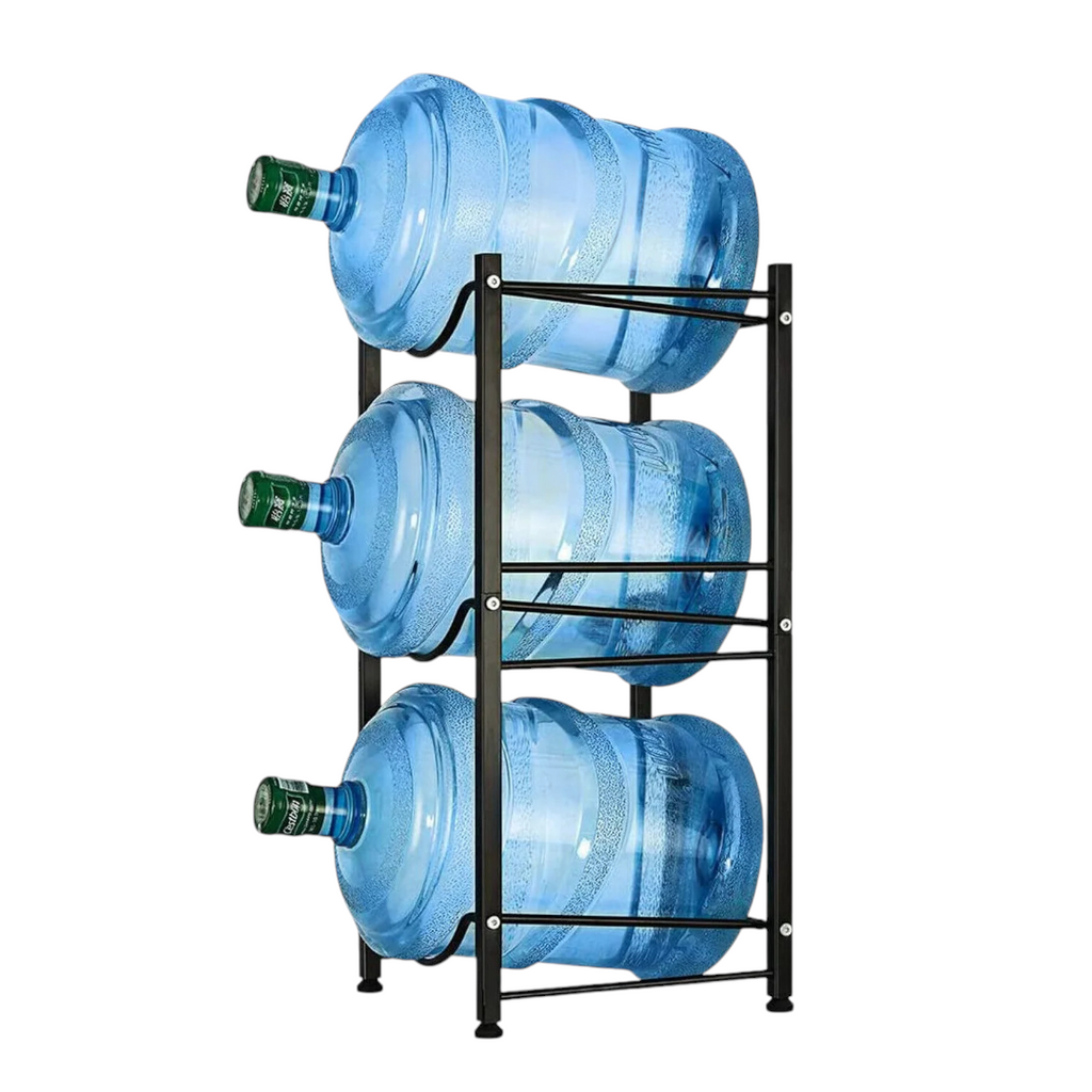 Fabricado con estructura de metal de alta calidad, sostiene fácilmente 3 garrafones de agua brindando una solución práctica para almacenar tus botellas de agua.