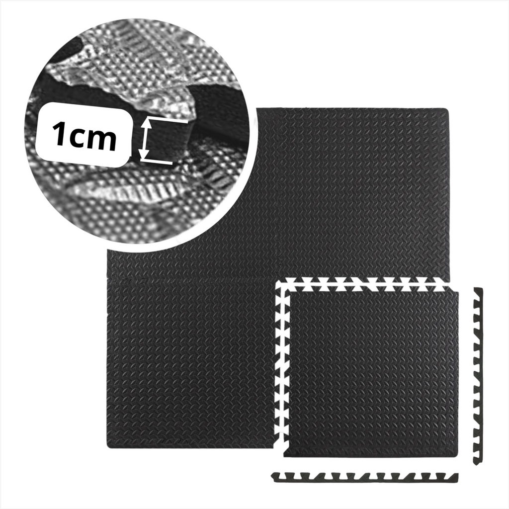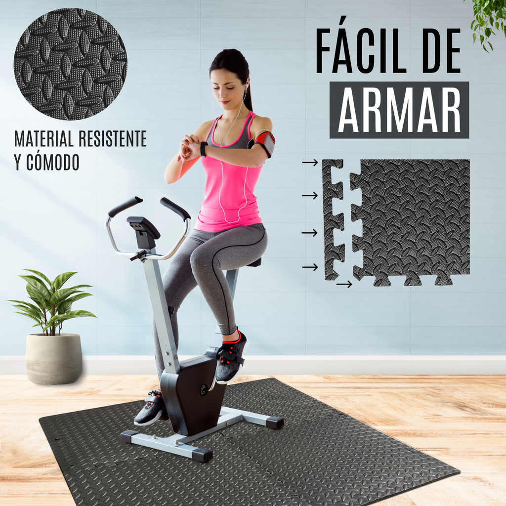 Tapete para ejercicio modular fabricado con espuma eva foamy, no toxico, resistente, aprueba de agua, estos pisos modulares son extremadamente resistentes y duraderos, ofreciendo una superficie confiable que soporta entrenamientos intensos y el uso constante.