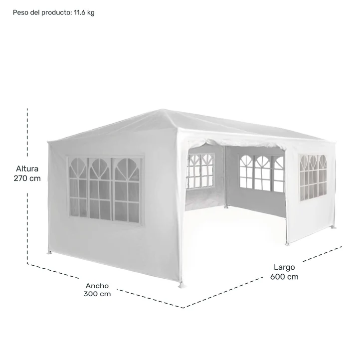 Cuenta con un tratamiento de impermeabilidad y protección anti rayos UV. Ideal para eventos de jardín o eventos publicitarios y de venta, no se decolora con el sol.